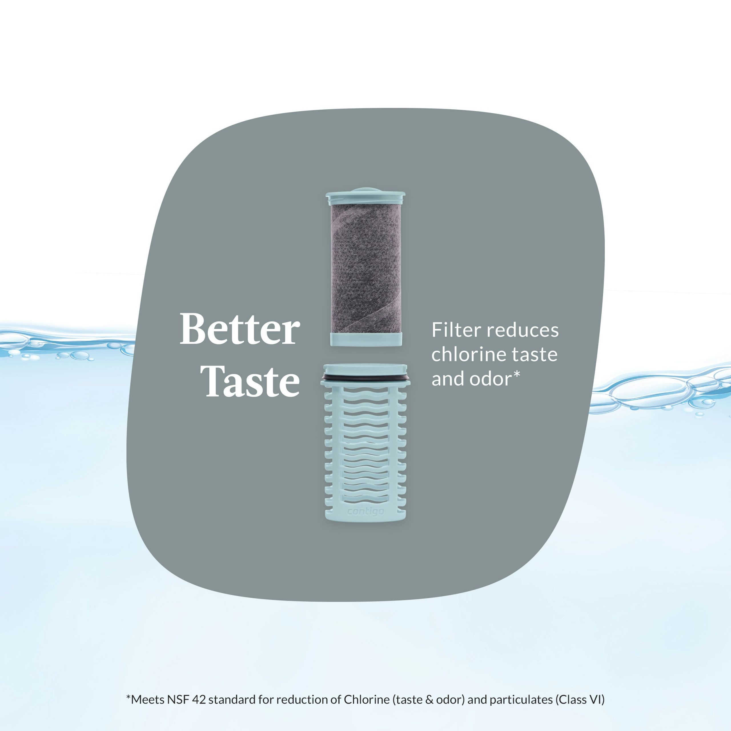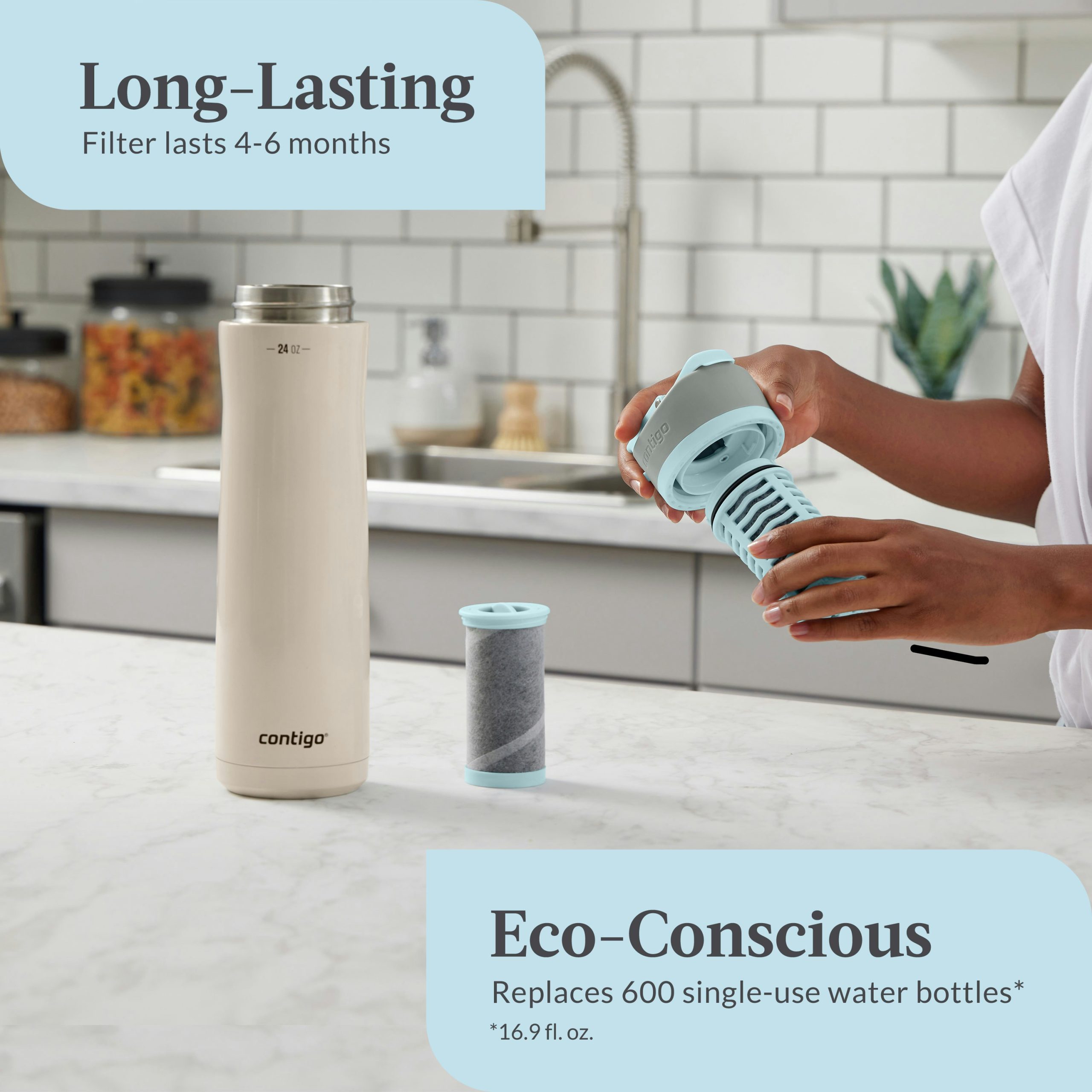 - Long-lasting filter lasts 4-6 months (80 gallons)​ and replaces the equivalent of 600 (16.9 fl. oz.) single-use water bottles​