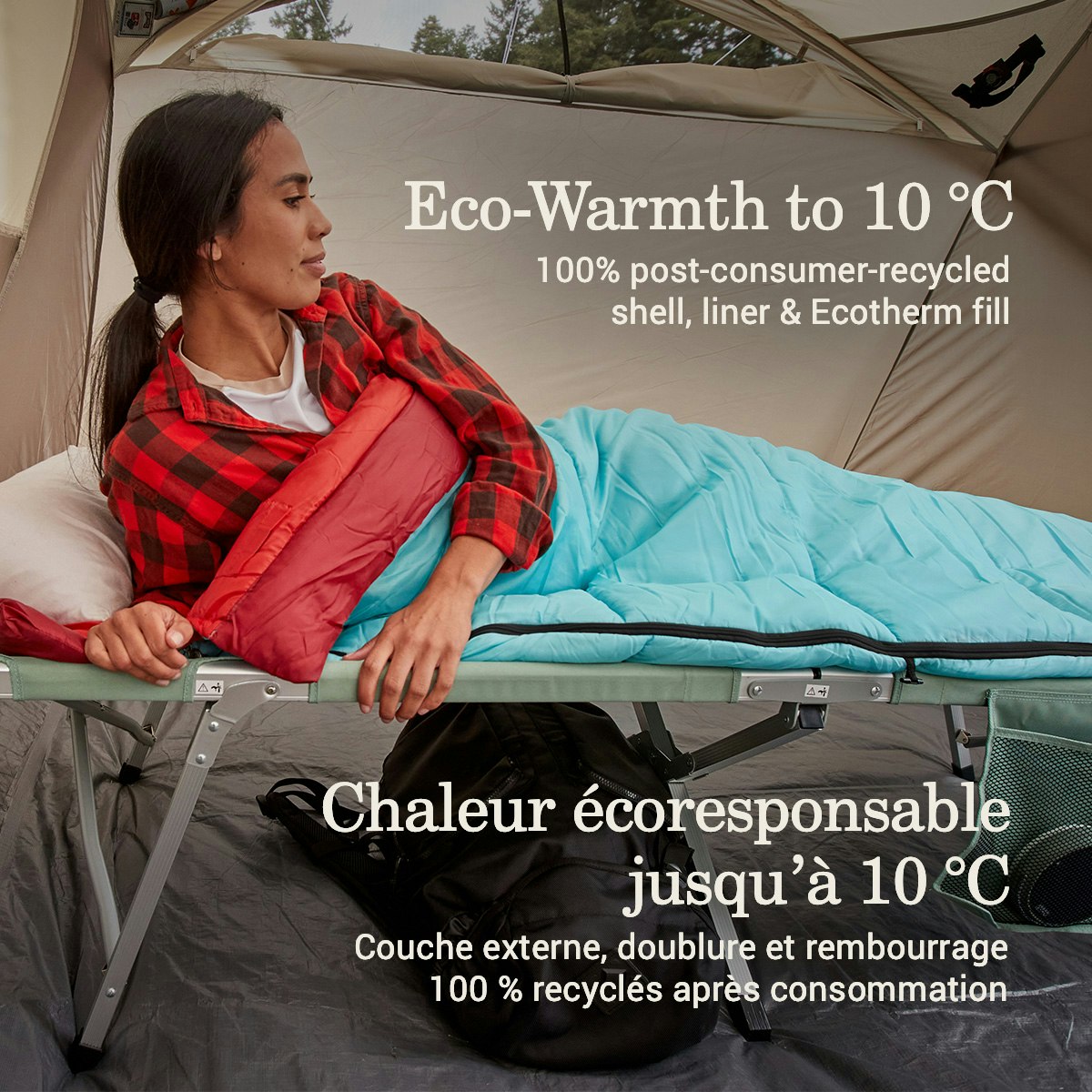 - Eco-conscious warmth to 50°F, made with 100% post-consumer-recycled shell, liner & Ecotherm™ fill