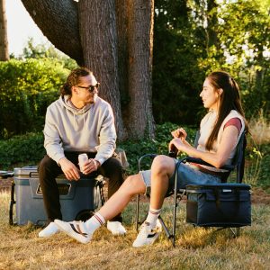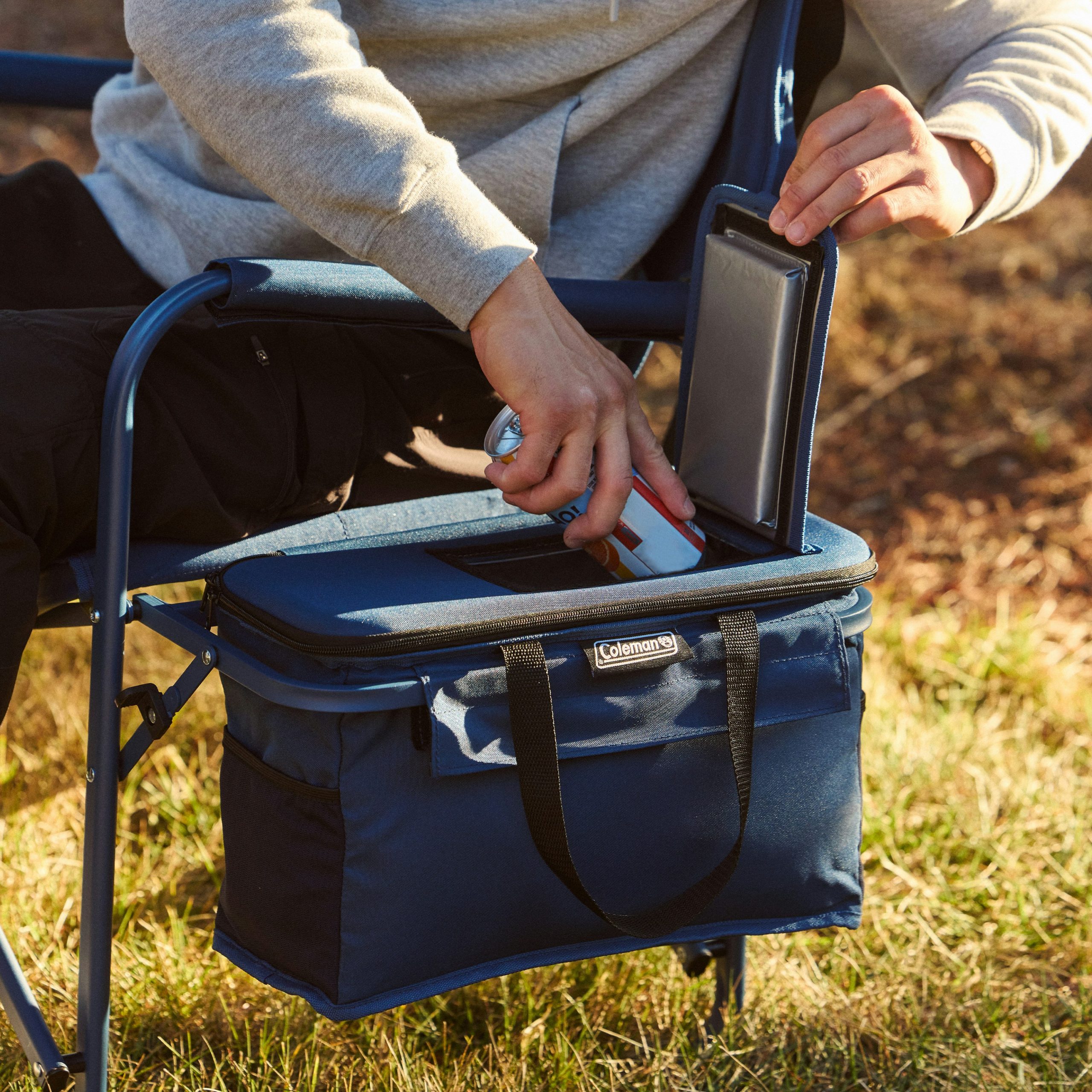 Post up at the tailgate, music fest, or campsite in the Coleman® Flex ‘N Goâ„¢ Chair with a built-in table and removable 28-can cooler and you’re ready to rock. Enjoy the flexibility of always having a cold drink close at hand or ready for your pals with the convenient built-in cooler. The cooler’s hard top doubles as a tabletop, so you don’t have to sacrifice space for convenience. This beach chair’s high back and angled armrests, combined with a bucket seat design for lumbar support, keep you comfortable for long days of lounging at the tailgate or campsite. The built-in 28-can Coleman® cooler is soft-sided for easy packing when the show’s over, and it’s removable in case you want to take it on the move.