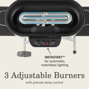 The Coleman® RoadTripâ„¢ 285 Standup Propane Gas Grill features sturdy quick-fold legs and wheels for hassle-free setup and takedown, so that taking your grill on a camping trip or to a tailgate is a breeze. You’ll also enjoy matchless lighting with the Instastartâ„¢ push-button ignition system and more precise temperature control with the improved technology on 3 adjustable burners.