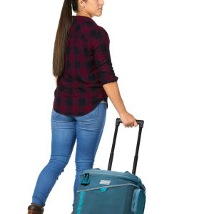 - Heavy-duty wheels, telescoping locking handle for easy pulling across rough terrain