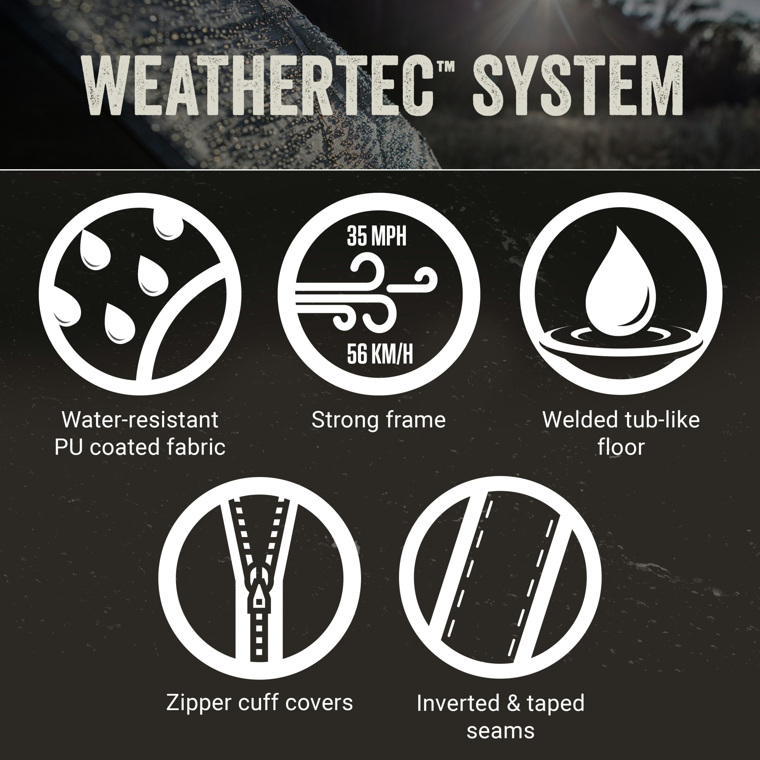 - WeatherTec system keeps water out with patented welded floors and protected seams