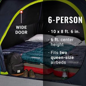 - Wider door makes it easier to move air beds, sleeping bags, and other gear in and out of the tent