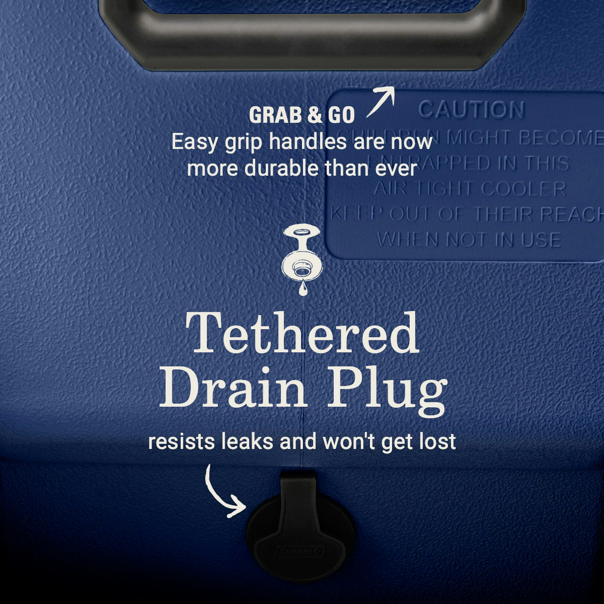 Icy beverages and shared meals fuel the best times outdoors, and the Classic Seriesâ„¢ Cooler is the right choice for the job. This large 120-quart chest holds up to 102 cans and 60 lbs. of ice, enough to refresh the entire gang. Looking for multiday ice retention? TempLock FXâ„¢ insulation in the lid and body has you covered. And, the 316 Series is made with 15% less plastic than comparable Coleman® coolers. Built to last, the Have-A-Seat Lidâ„¢ supports up to 250 lbs., has four cup holders, and is recessed for easy access. Want more? The tethered drainplug resists leaks, the liner resists stains, and our EZ-Clean top makes cleanup simple. Sporty tri-color combo has classic appeal, and there’s even a built-in ruler for measuring the catch of the day. From campsite to worksite, beach to bonfire, soccer field to stadium–Coleman helps you keep your cool.