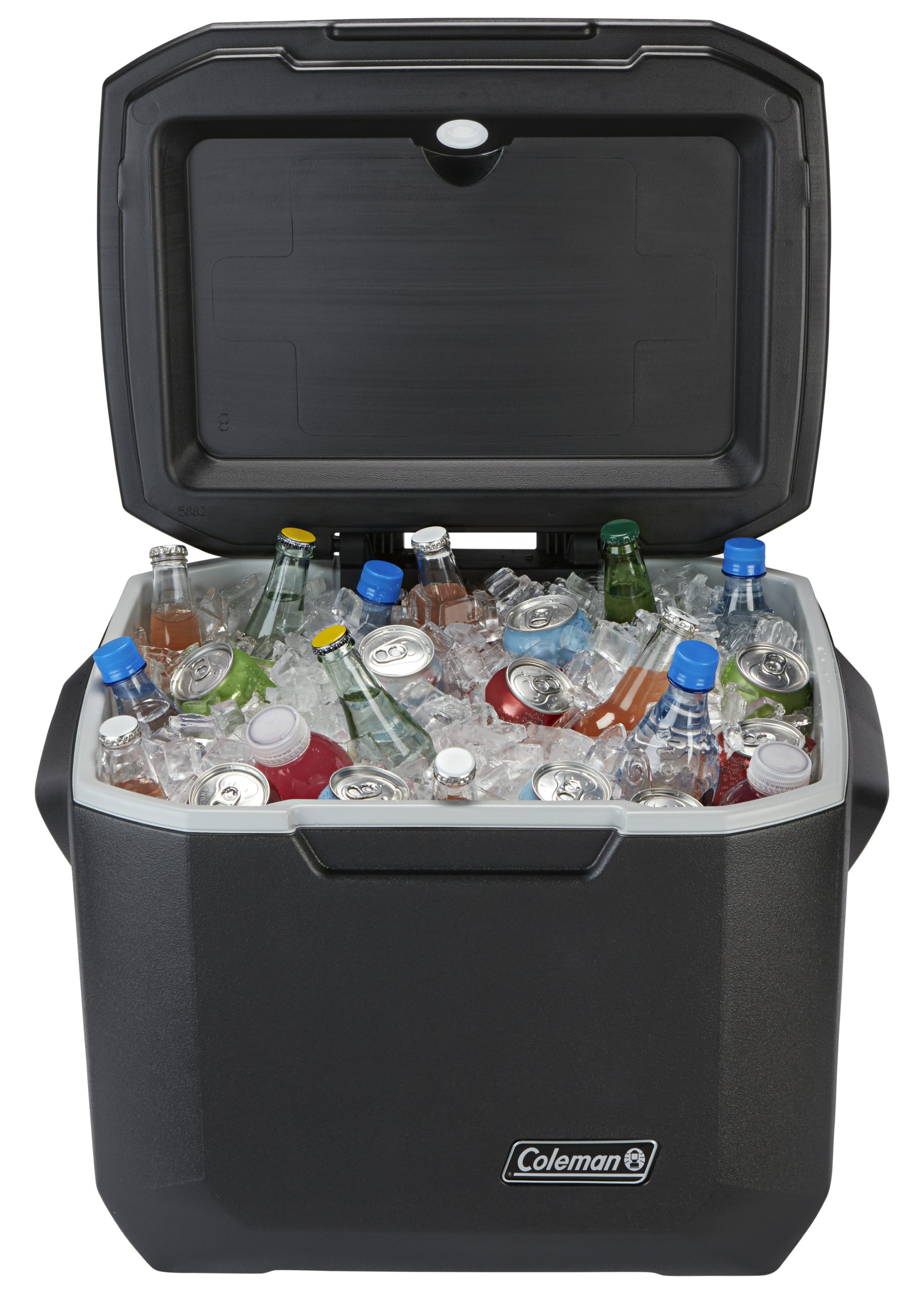 Get the good times rolling with the Coleman® 50-Quart Xtreme® 5-Day Hard Cooler with Wheels. Whether you’re strolling to the beach or going to a ball game, the heavy-duty wheels handle almost any terrain with little effort. Your high-capacity cooler holds up to 84 cans, which means you’ll have plenty of room for refreshments for a whole group of friends and family.