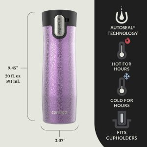 There’s a commuter, traveler, and urban explorer in everyone. The Contigo AUTOSEAL® West Loop Vacuum-Insulated Stainless Steel Travel Mug with Easy-Clean Lid, 20 oz, is made with every journey in mind. The ultimate in on-the-go convenience, this thermal coffee mug is leak- and spill-proof thanks to AUTOSEAL® technology. Press a button to drink, then release to seal after every sip. THERMALOCK vacuum insulation keeps liquids piping hot up to 13 hours or icy cold up to 28. The Easy-Clean Lid pops open completely when you’re done drinking, letting you get into all the nooks and crannies for thorough cleaning. The innovative lid is also one piece, so there are no parts to misplace when you toss it on the top rack of your dishwasher. Stainless steel bodies are hand-wash only.