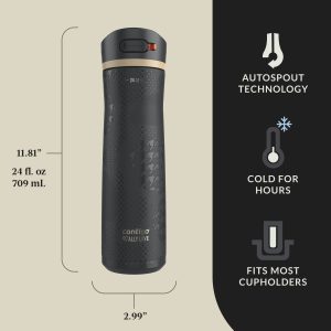 - Drinks stay cold for 24 hours because of the double-wall vacuum-insulated stainless steel