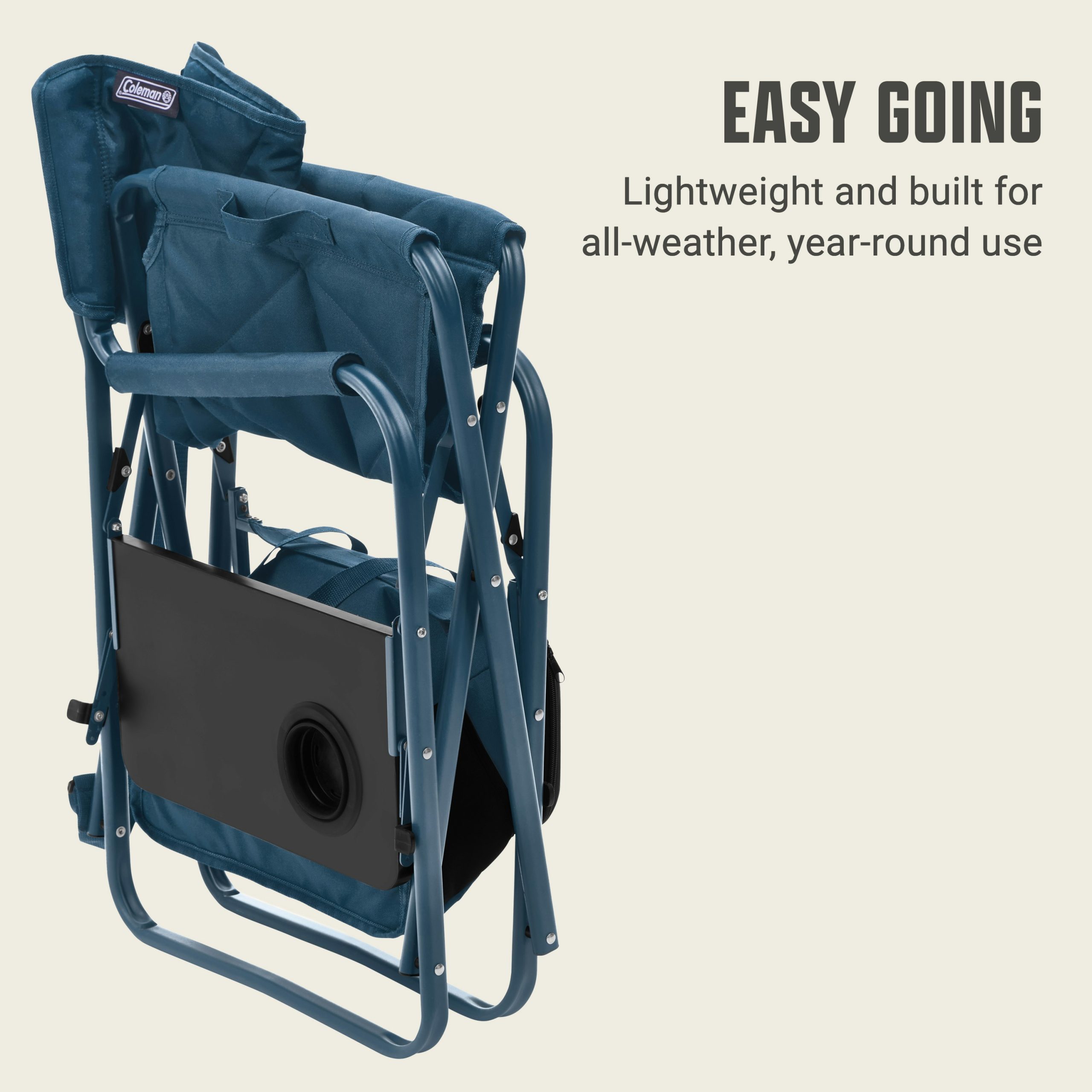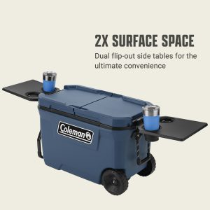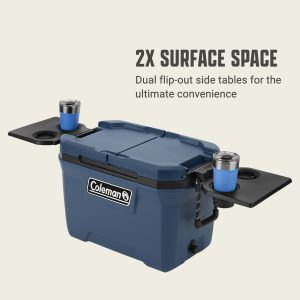 - POP-OUT TABLE & COOLER: A handy built-in side table and 28-can detachable Coleman® soft-sided cooler with a hard-top lid​