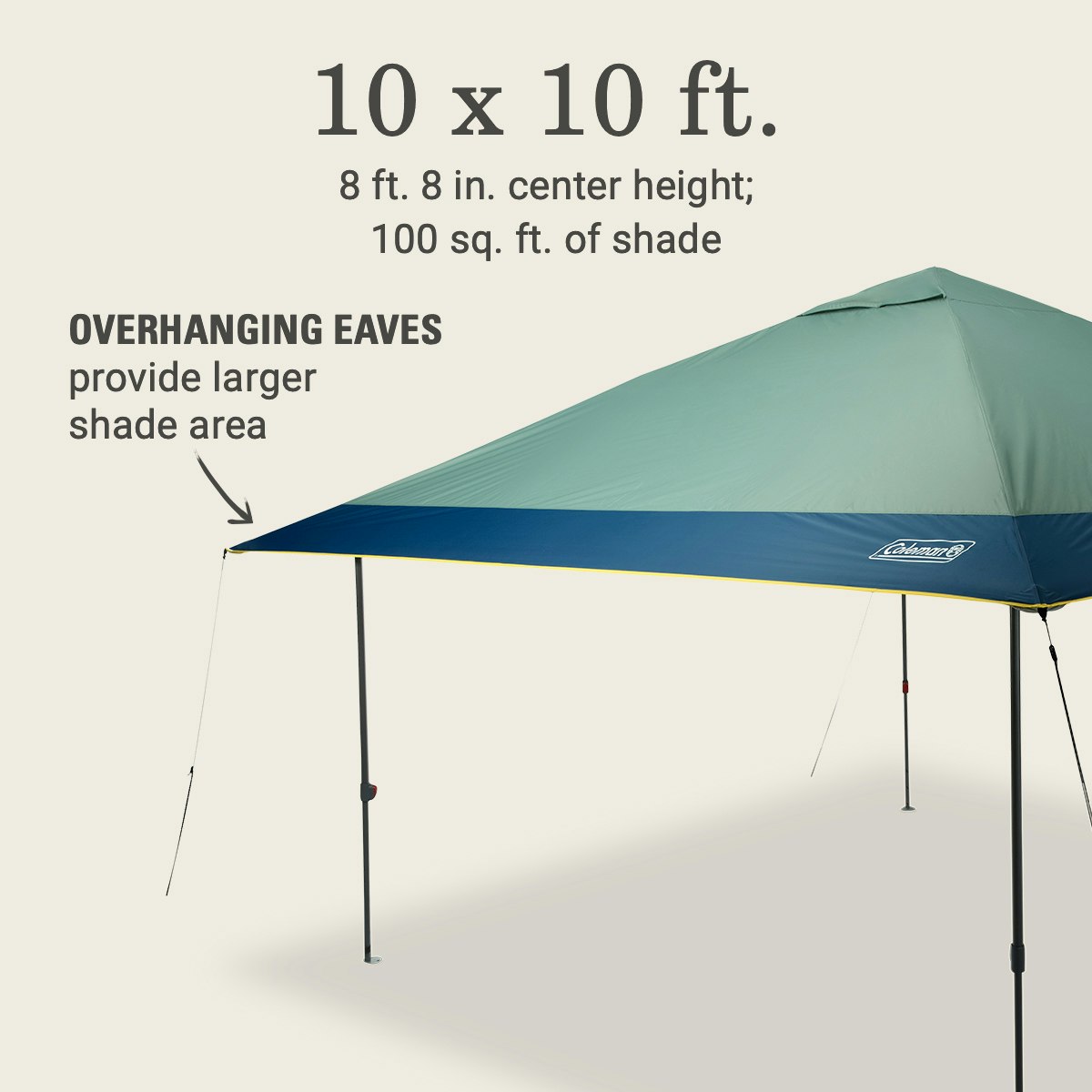 - DIMENSIONS & WEIGHT: 10 x 10 ft.; 8 ft. 8 in. center height; 37.9 lbs