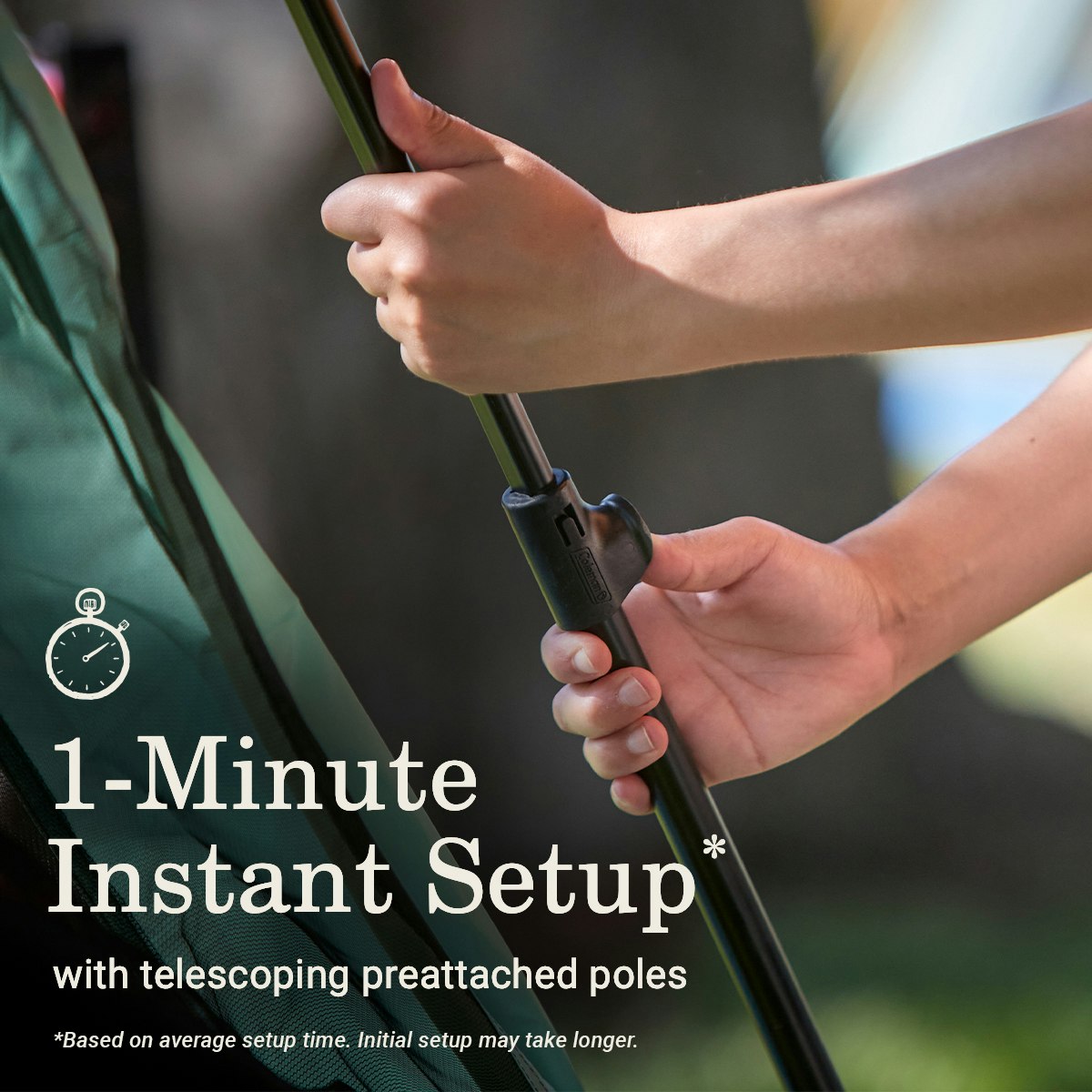 - 1-MINUTE SETUP: Quick setup with lightweight hub, attached telescoping poles, and pinch-free buttons