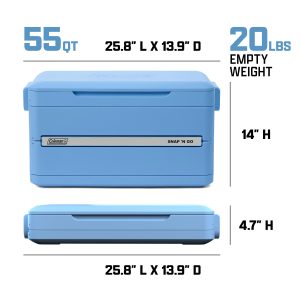 The Coleman® Snap ‘N Go 55-Quart Collapsible Cooler quickly collapses to just 1/3 of its size for easy storage in your car, under your bed, or in a closet . It’s the best of both worlds: you get the superior ice retention and durability of a hard cooler combined with the portability and easy storage you usually only find in a soft-sided cooler. This collapsible cooler takes just 10 seconds to go from stowed to ready-to-load. Keep a cooler or two stored in your apartment, garage, car, or boat, and break them out as needed. This durable cooler holds ice for up to two full days. A removable liner keeps it watertight and makes post-trip cleanup easy after your picnic, tailgate, or beach day.
